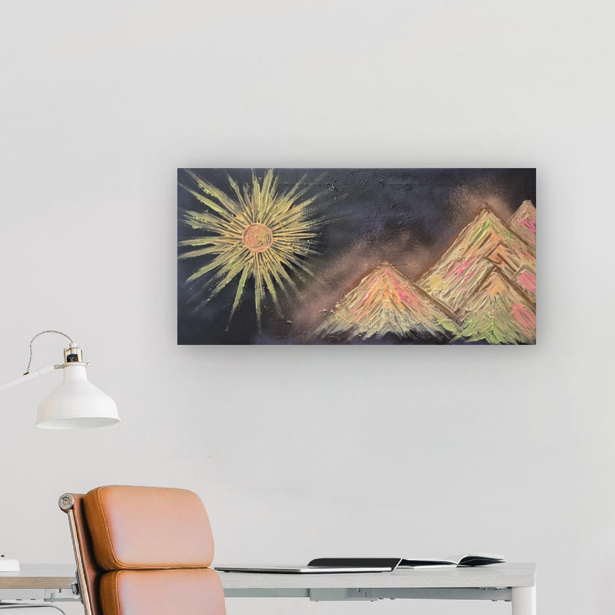 “Illumination from Darkness” explores the fusion of organic light and elemental energy — a vision where nature and innovation coexist as one living force. The textured layers evoke natural formations illuminated by radiant, almost bio-electric light, symbolizing rebirth and balance between creation and evolution.