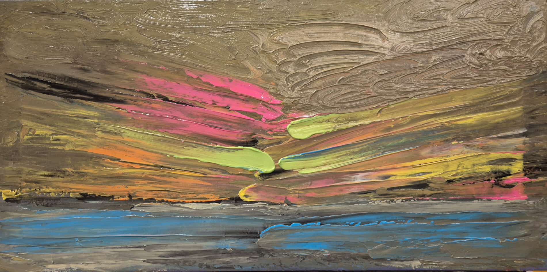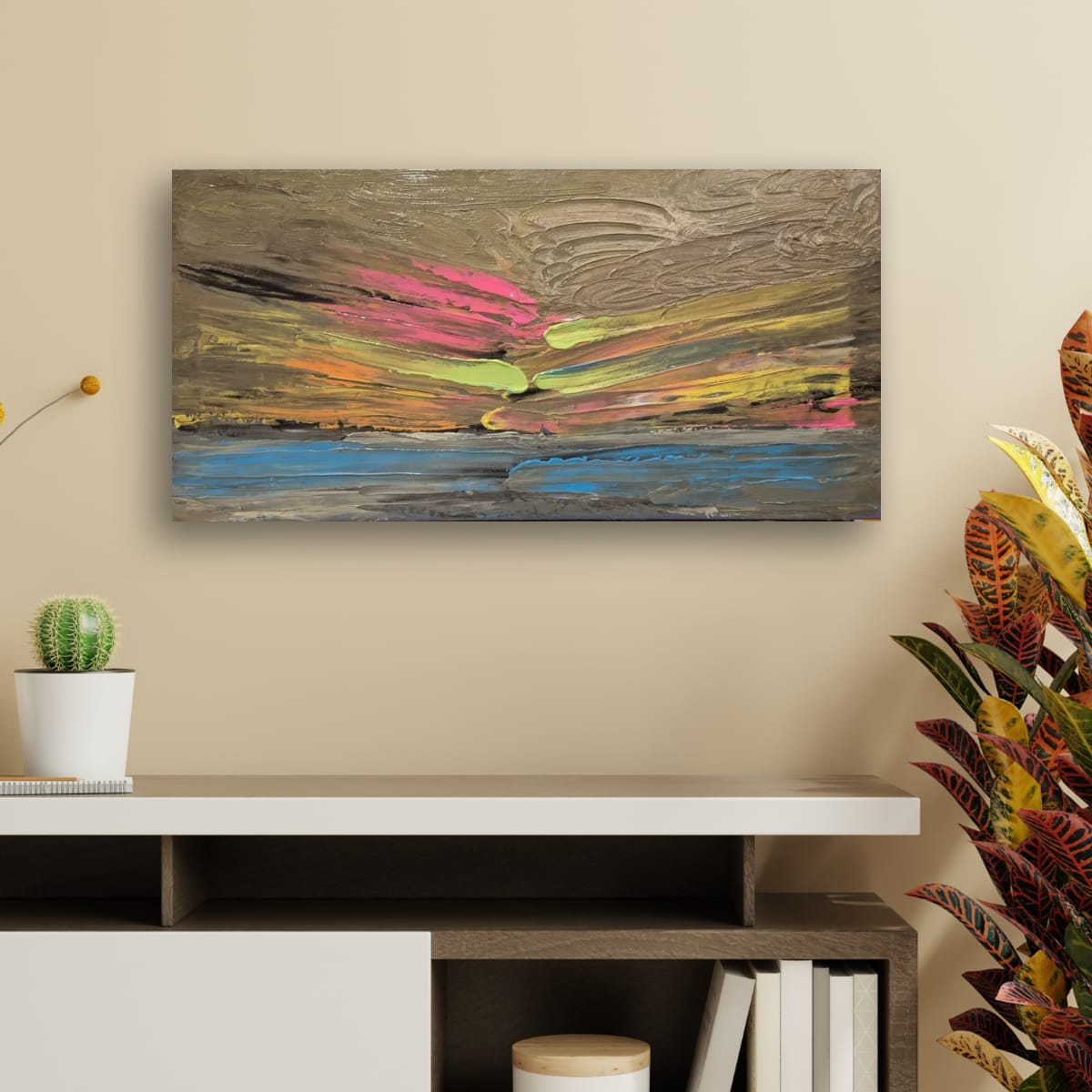 Resurgence captures a moment of renewal and quiet strength. Thick, expressive layers of acrylic build tension between shadow and light, where muted tones yield to vibrant surges of colour. The work reflects nature’s enduring rhythm — a visual metaphor for hope, transformation, and the unstoppable force of creative energy.