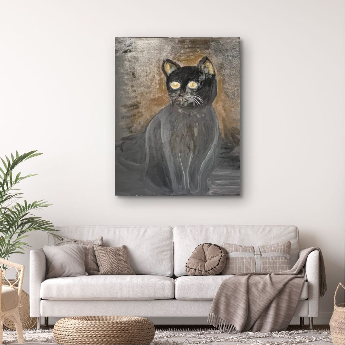 “The Silent Observer,” an oil on canvas painting, captures the enigmatic presence of a watchful figure. The artist’s masterful use of oil paint creates a rich and textured surface, drawing the viewer into the subject’s quiet world. The cat’s piercing gaze and subtle smile suggest a deep understanding or hidden knowledge, leaving the viewer to ponder the mysteries beyond the frame. The painting was created on 11th February 2025.